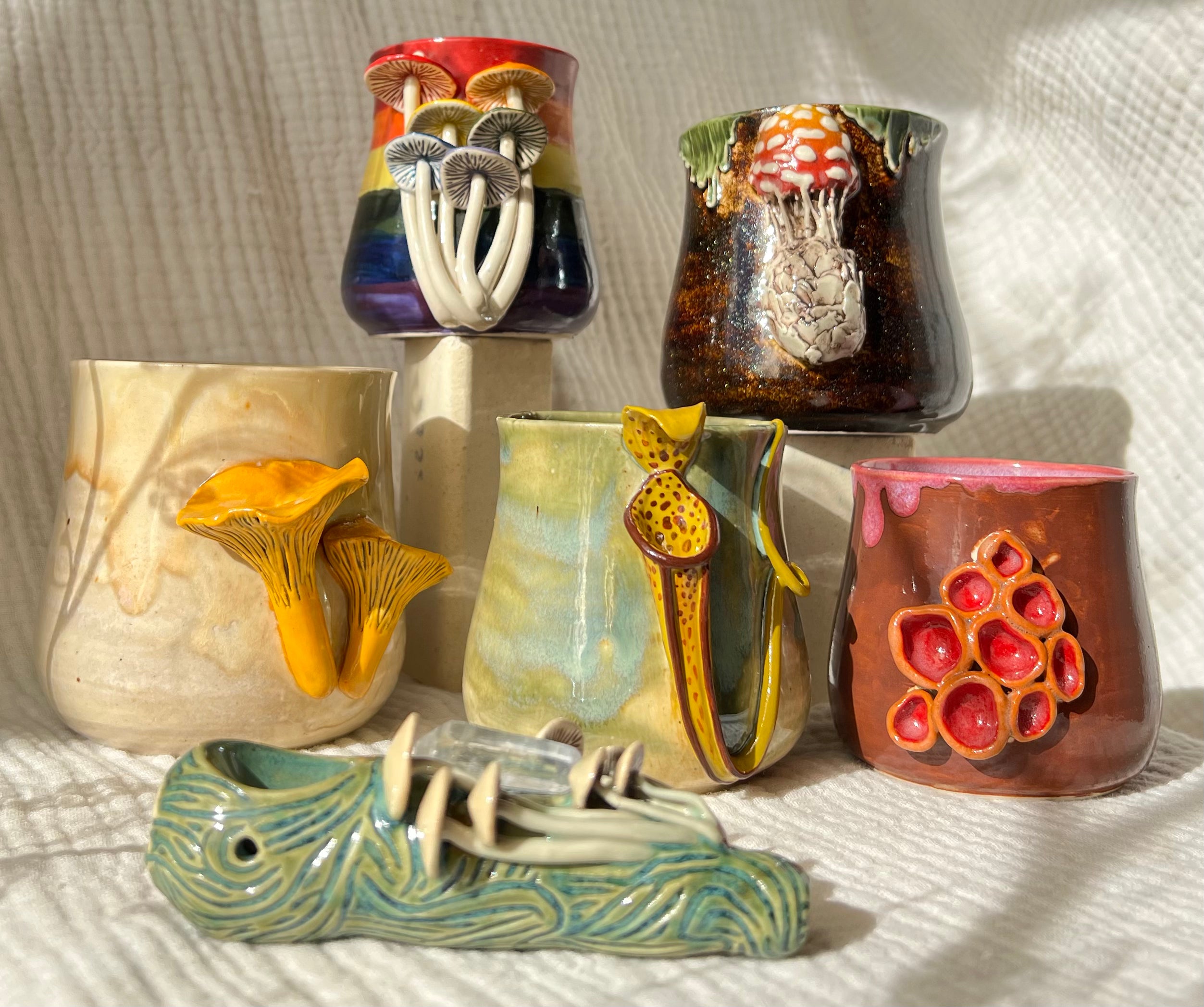 With each sculpted piece, I embarked on a journey of discovery, challenging the boundaries of my practice and delving into new realms of creativity. I felt heavily Inspired to capture the beauty of natures essence in clay, each mug a tribute to the quiet beauty they bring to our lives. My work represented the fascinating complexity of these stunning organisms.