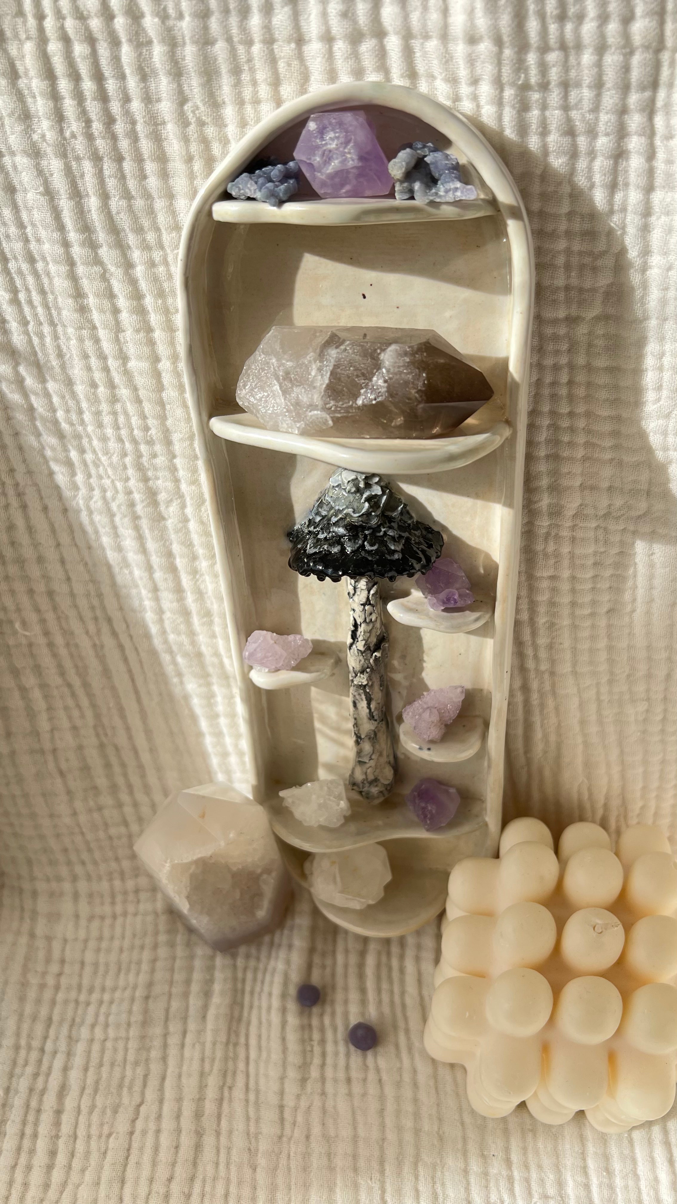 Introducing smoking pipes and ramen bowls adds a diverse element to my portfolio, But it doesn't stop there. I've also delved into the realm of home decor, crafting a Trinket wall shelf to add the perfect fairycore vibes to you space.
